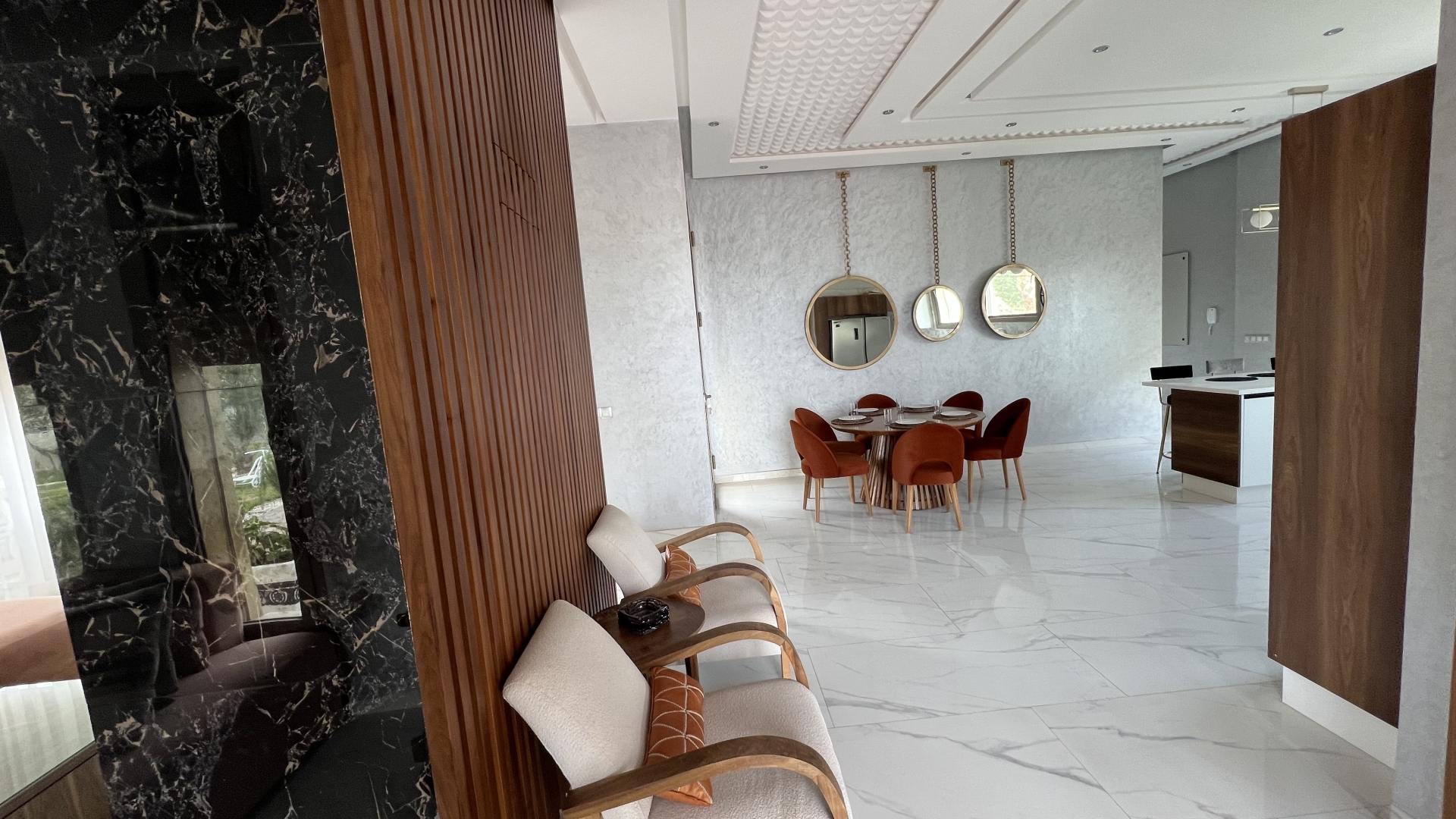 La villa bénéficie de prestations haut de gamme : climatisation centralisée, finitions de qualité et des matériaux nobles.