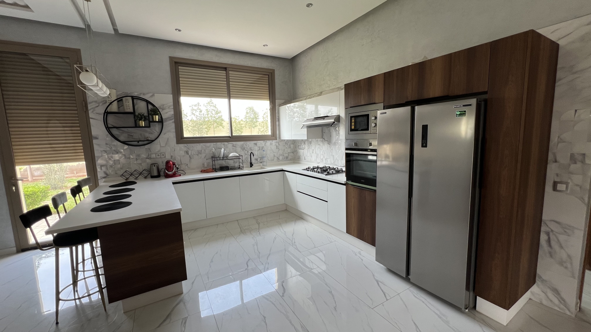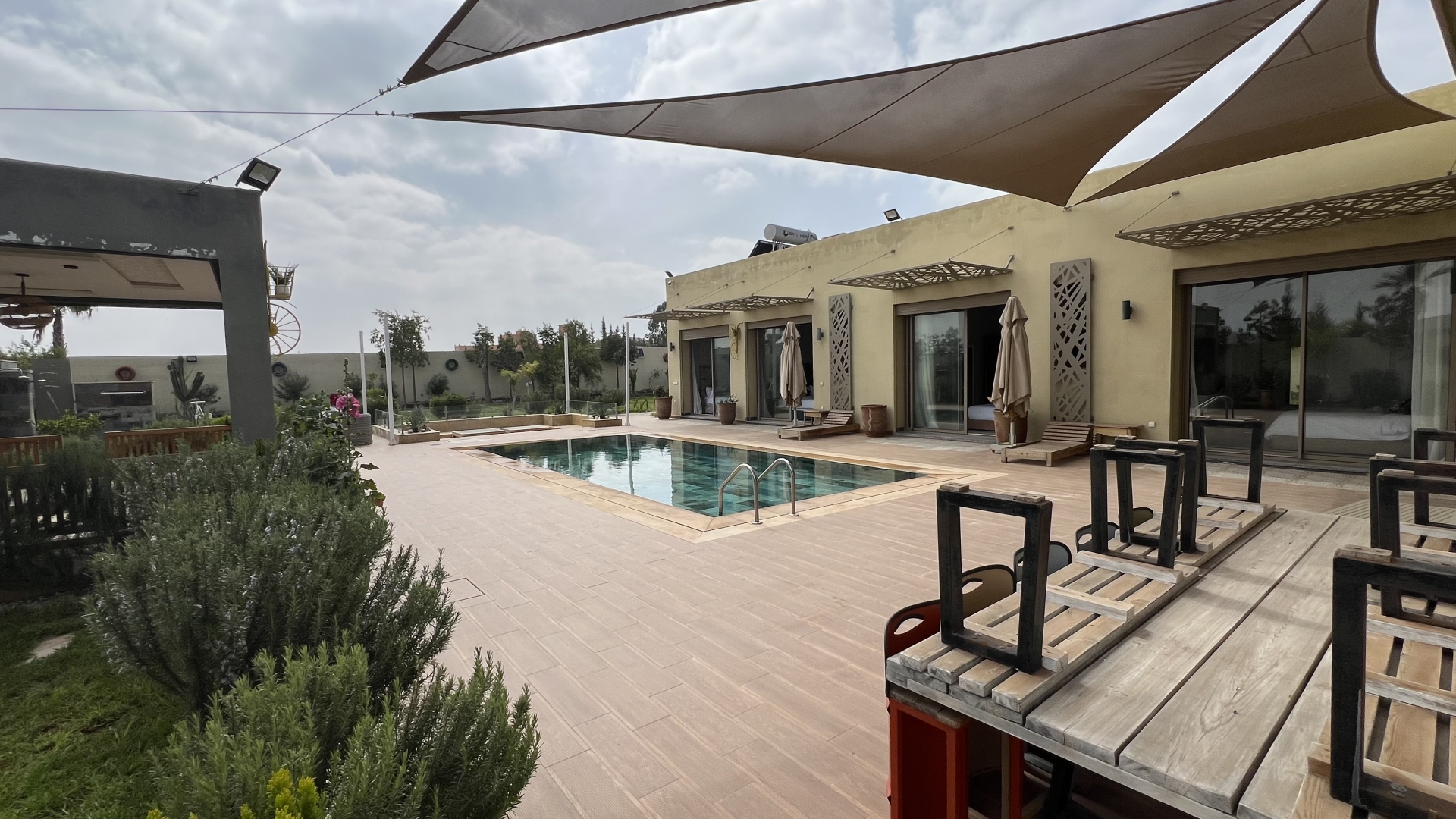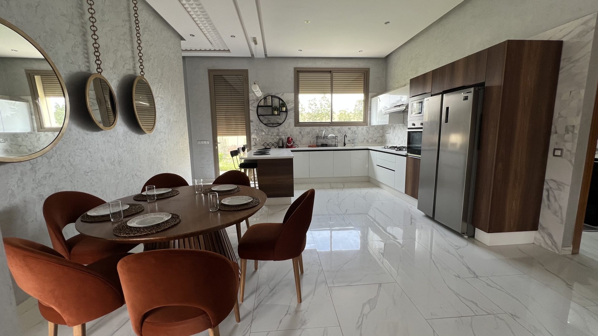 Notre Agence Immobilière TERRE & DIAMANT vous présente à la location longue durée cette magnifique villa alliant confort, modernité et élégance, située route de Casa à seulement 15mn de Marrakech.