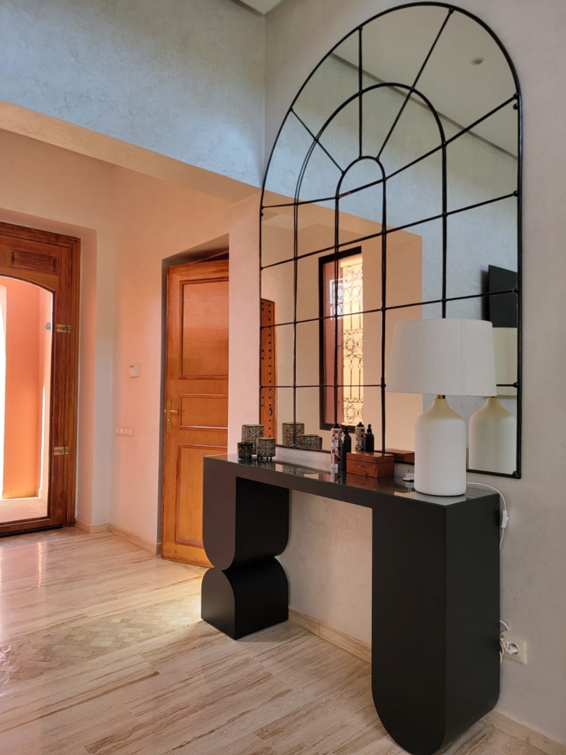 Notre Agence Immobilière TERRE & DIAMANT vous propose à la location longue durée, cette magnifique villa isolée édifiée sur un terrain de 946 m2 située à seulement 6 kms de Marrakech proche de toutes commodités.