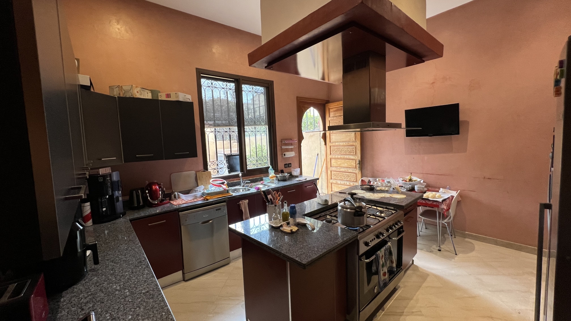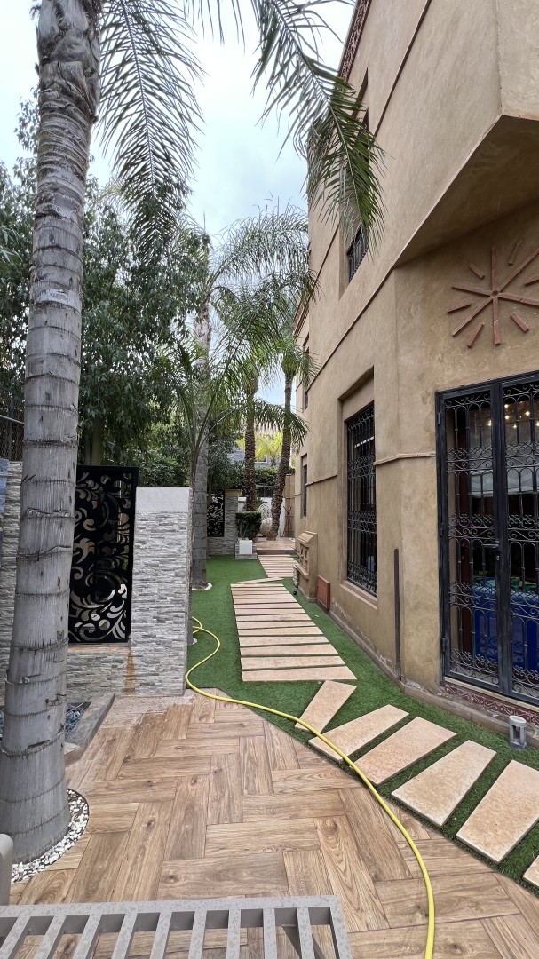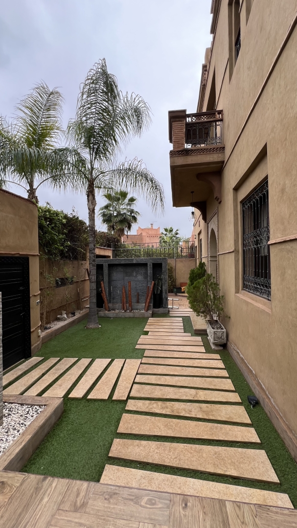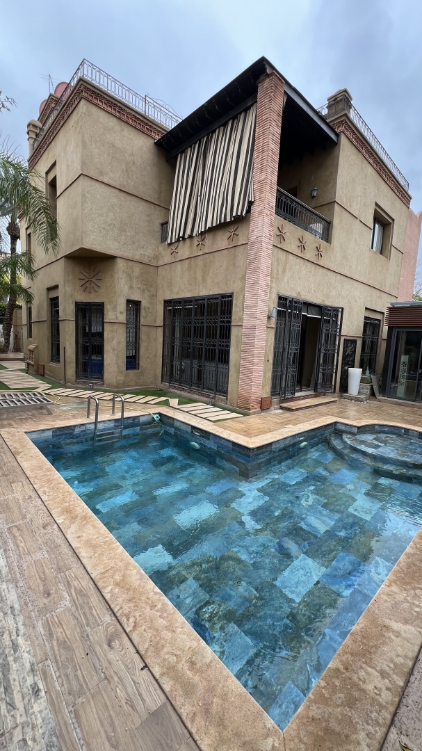 Notre Agence Immobilière TERRE & DIAMANT, vous propose à la vente cette magnifique villa d’une surface habitable de 375 m2 édifiée sur un terrain de 450 m2 située dans une résidence sécurisée à Targa Masmoudi très proche de Victor Hugo et Guéliz.