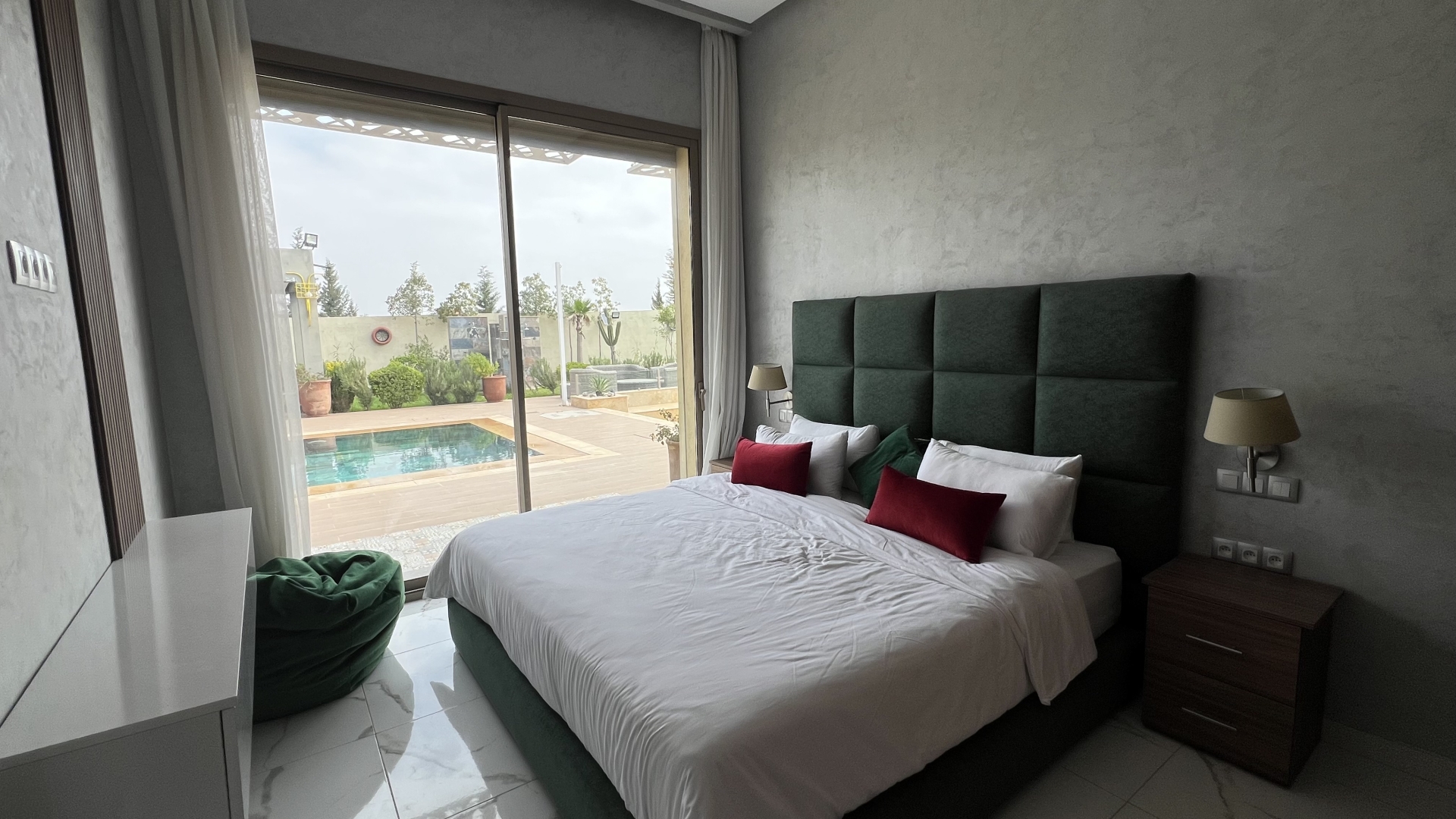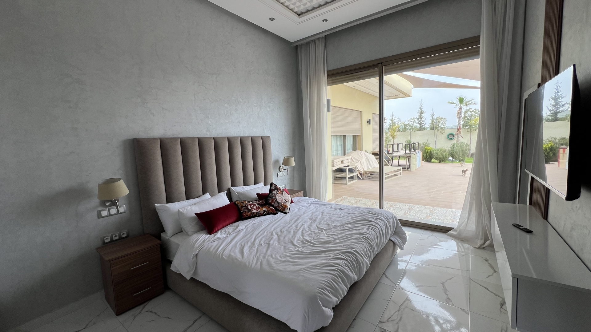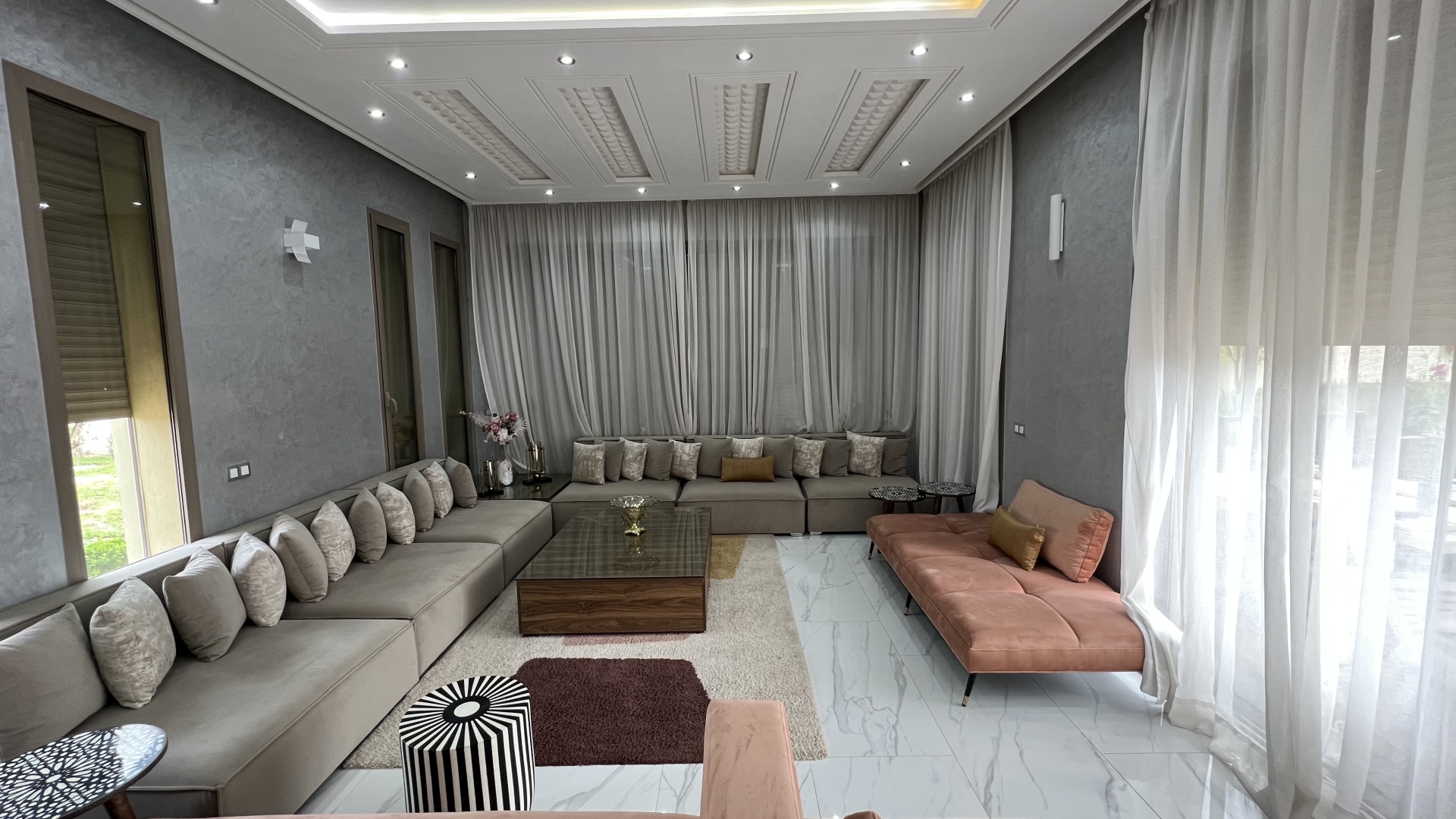 Notre Agence Immobilière TERRE & DIAMANT vous présente à la location longue durée cette magnifique villa alliant confort, modernité et élégance, située route de Casa à seulement 15mn de Marrakech.