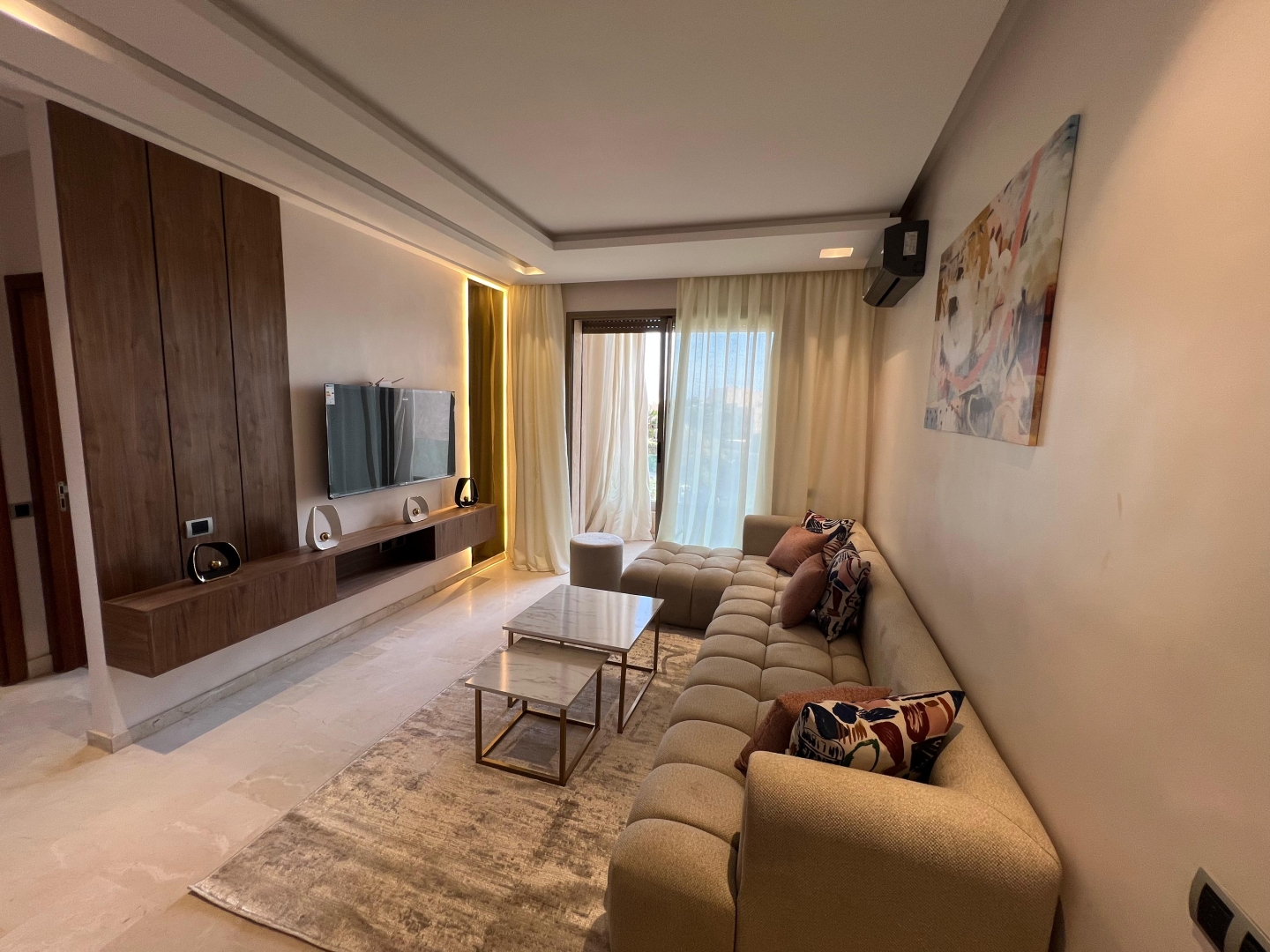 - 1 salon lumineux avec balcon offrant une vue sur les chaînes de l'Atlas