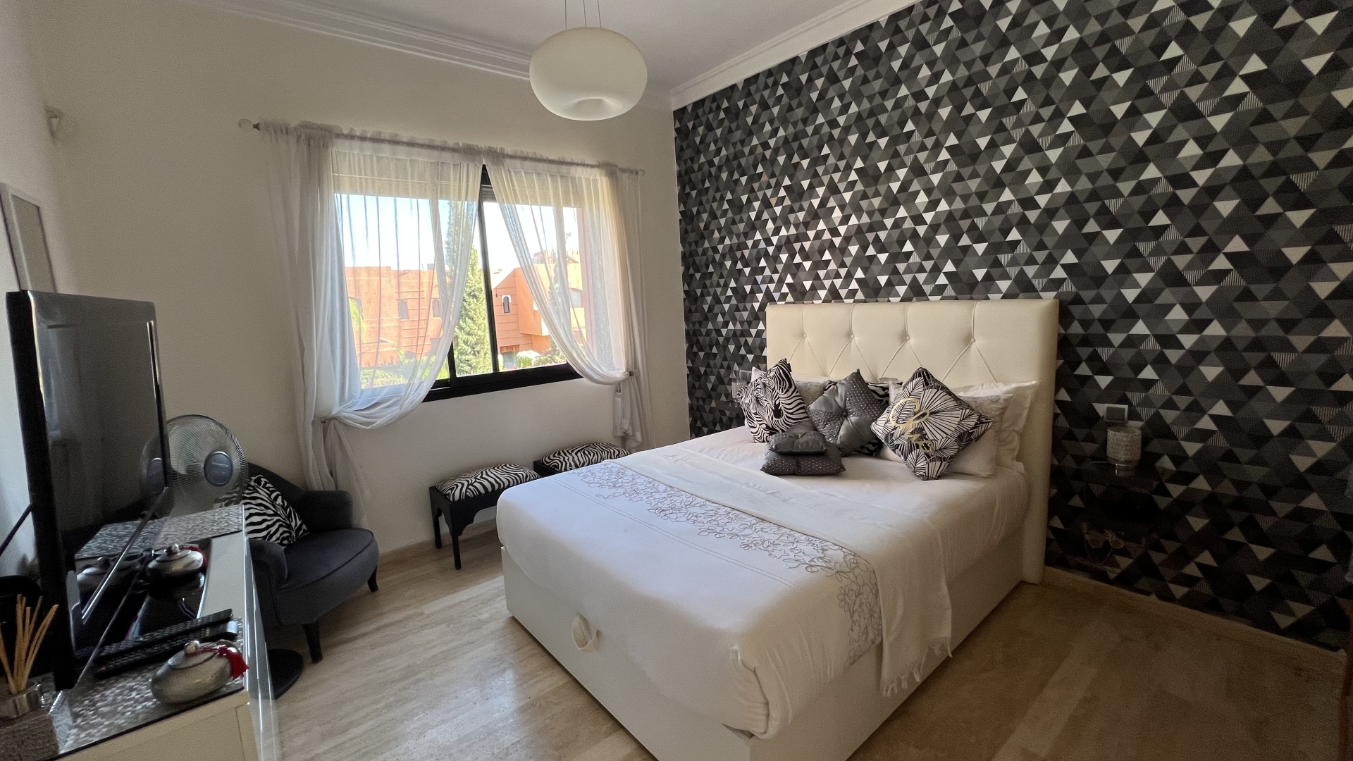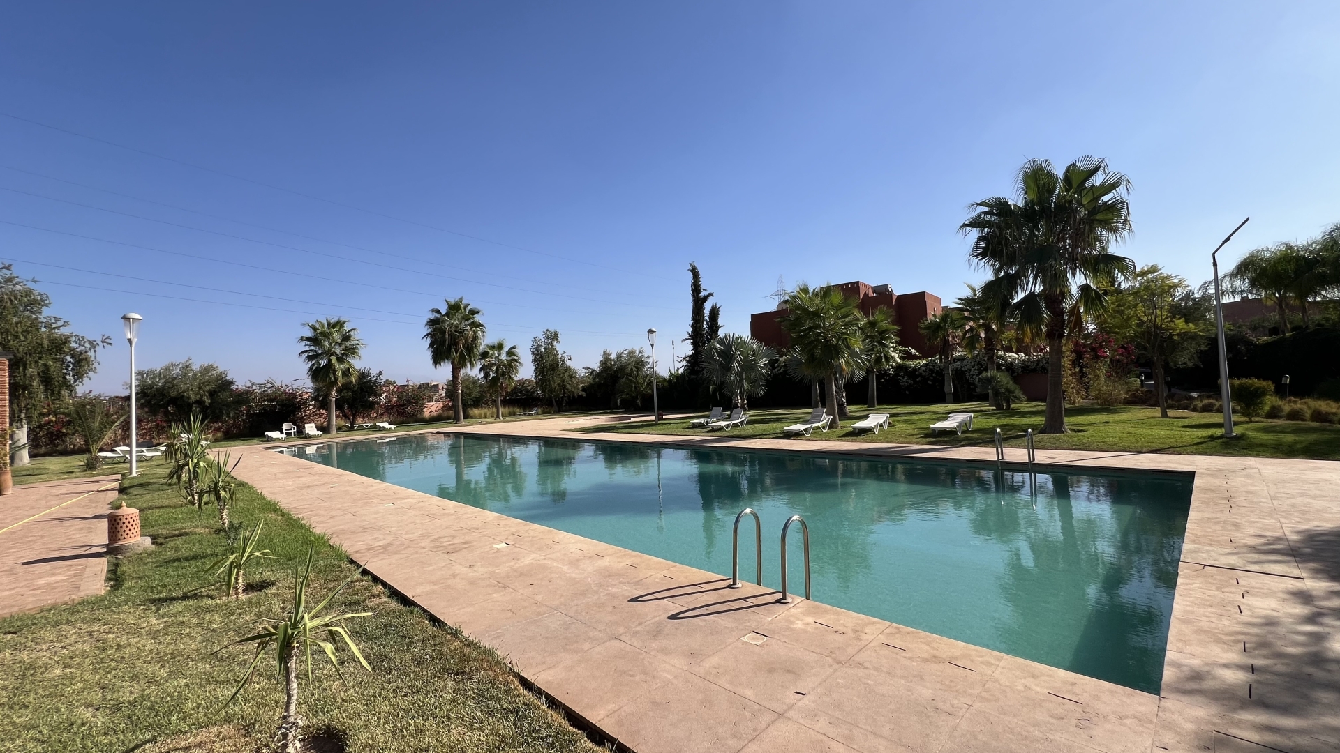 Cette villa vendue meublée (sauf bibelots) se trouve dans un domaine sécurisé avec piscine collective.