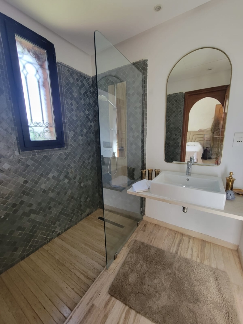 Notre Agence Immobilière TERRE & DIAMANT vous propose à la location longue durée, cette magnifique villa isolée édifiée sur un terrain de 946 m2 située à seulement 6 kms de Marrakech proche de toutes commodités.