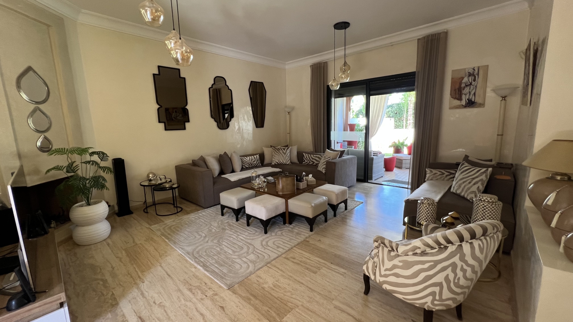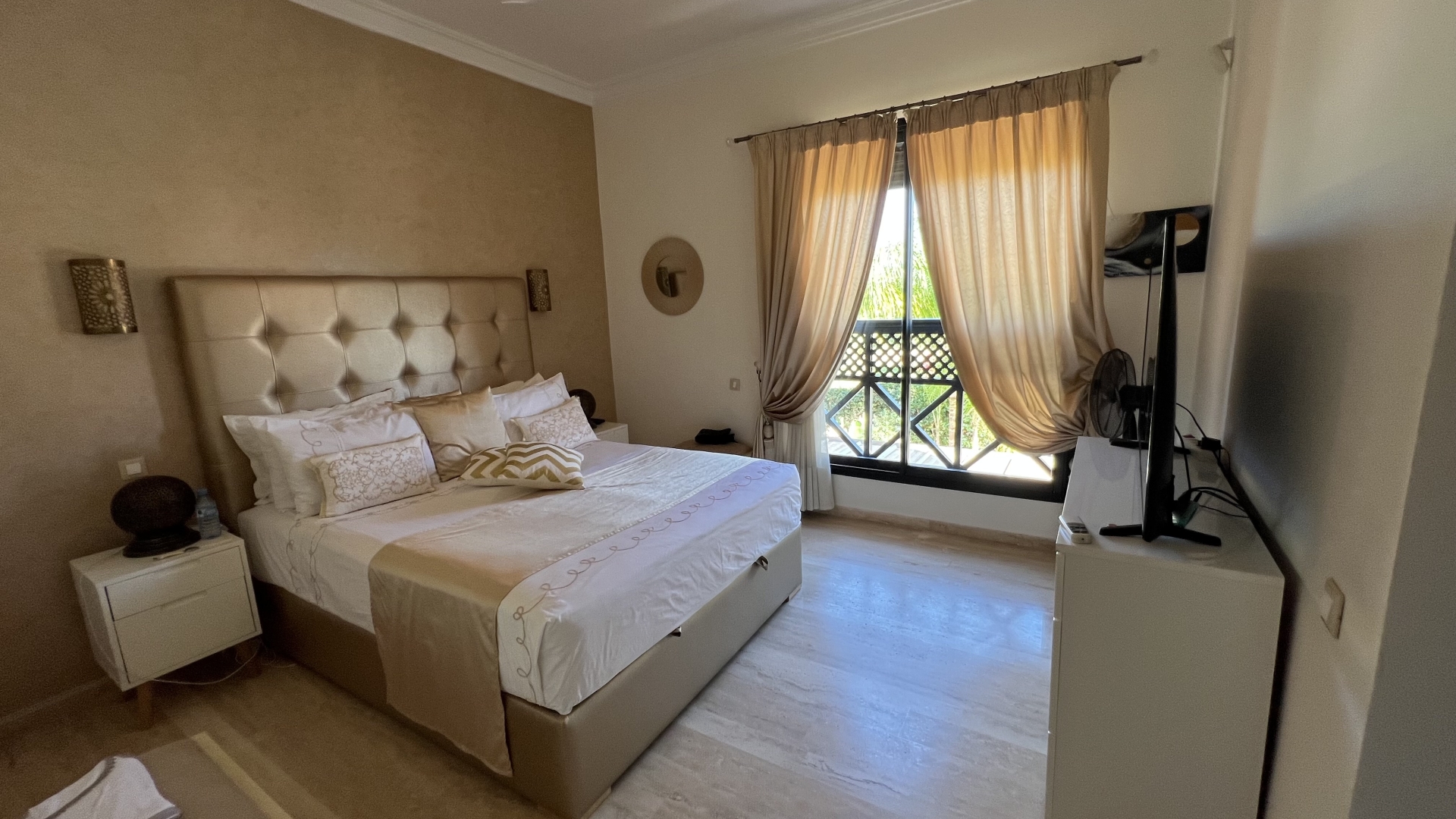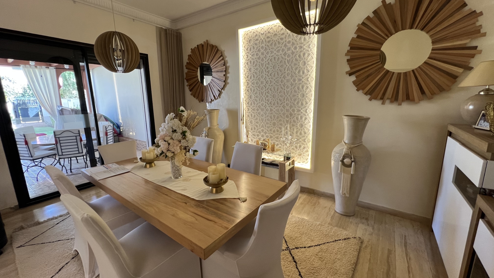 Cette villa vendue meublée (sauf bibelots) se trouve dans un domaine sécurisé avec piscine collective.